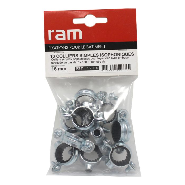 Sachet de 10 colliers métalliques acier simple isophonique Ø16 - RAM