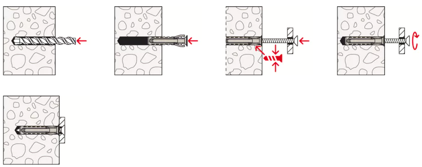 Grâce à sa quadruple expansion, la cheville à expansion assure une transmission optimale des forces dans les matériaux pleins comme le béton, les briques silico-calcaires et dans les maçonneries creuses.