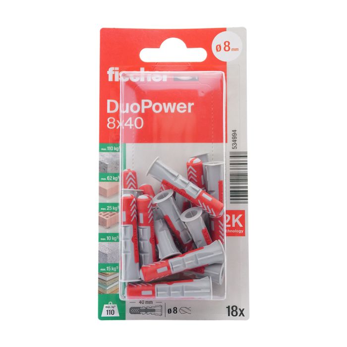 18 chevilles DuoPower Ø8 x 40 mm - Fischer