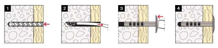 La fixation métallique pour isolant DHM se pose facilement au marteau. Le montage au marteau permet une progression rapide du travail et réduit les efforts. Grâce à la classe de résistance au feu R 120, son utilisation est possible pour les applications où une tenue au feu est exigée. Avec la fixation pour isolant DHM, on peut fixer par exemple des panneaux de laine de roche et de verre, des panneaux de mousse de verre ou des panneaux de construction légers en fibres de bois. Le montage simple au marteau permet une progression rapide de l'installation et réduit les efforts. La géométrie de la tige permet la pose sans préperçage dans le béton cellulaire et évite une étape de travail.