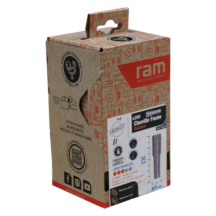 250 chevilles FUSÉE nylon tous matériaux Ø6 x 30 mm - Ram