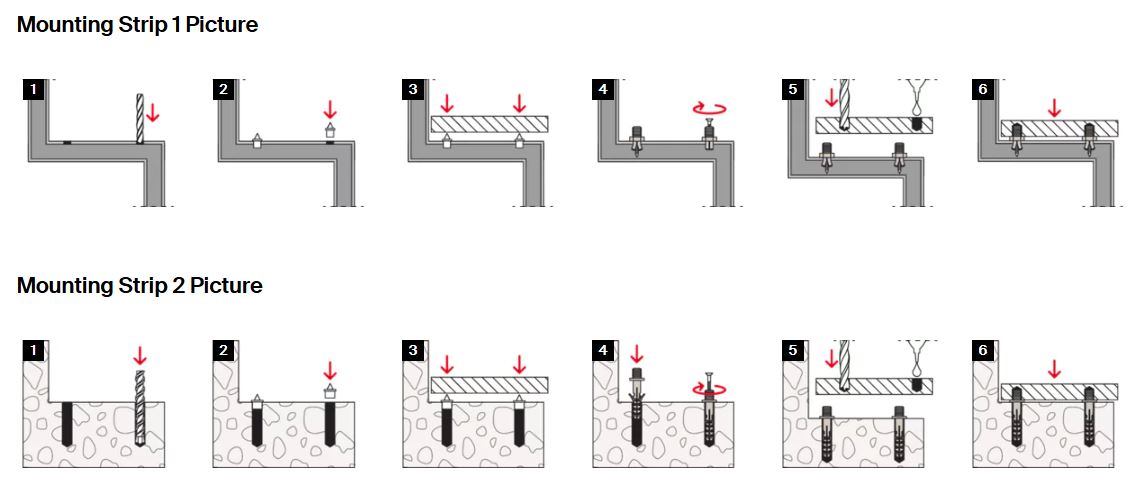 • Les fixations à expansion en nylon conviennent pour l'ancrage de marches d'escalier ou de panneaux en bois >30 mm sur des matériaux de construction pleins.