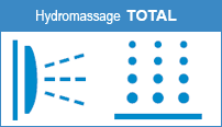 - Le système Total offre un hydromassage air et eau commandé par un panneau LCD numérique, avec différents programmes de massage, continu ou pulsant, et un Venturi électronique.