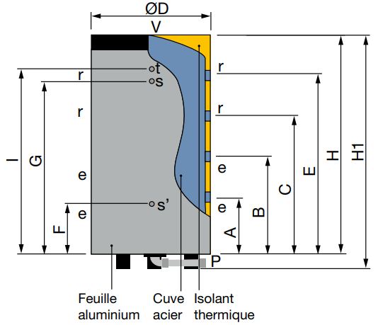 Finition extérieure : Feuille d'aluminium laquée lisse satinée