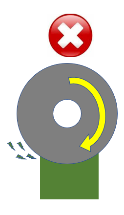 La découpe ne doit pas commencer sur le dessus de la pièce.