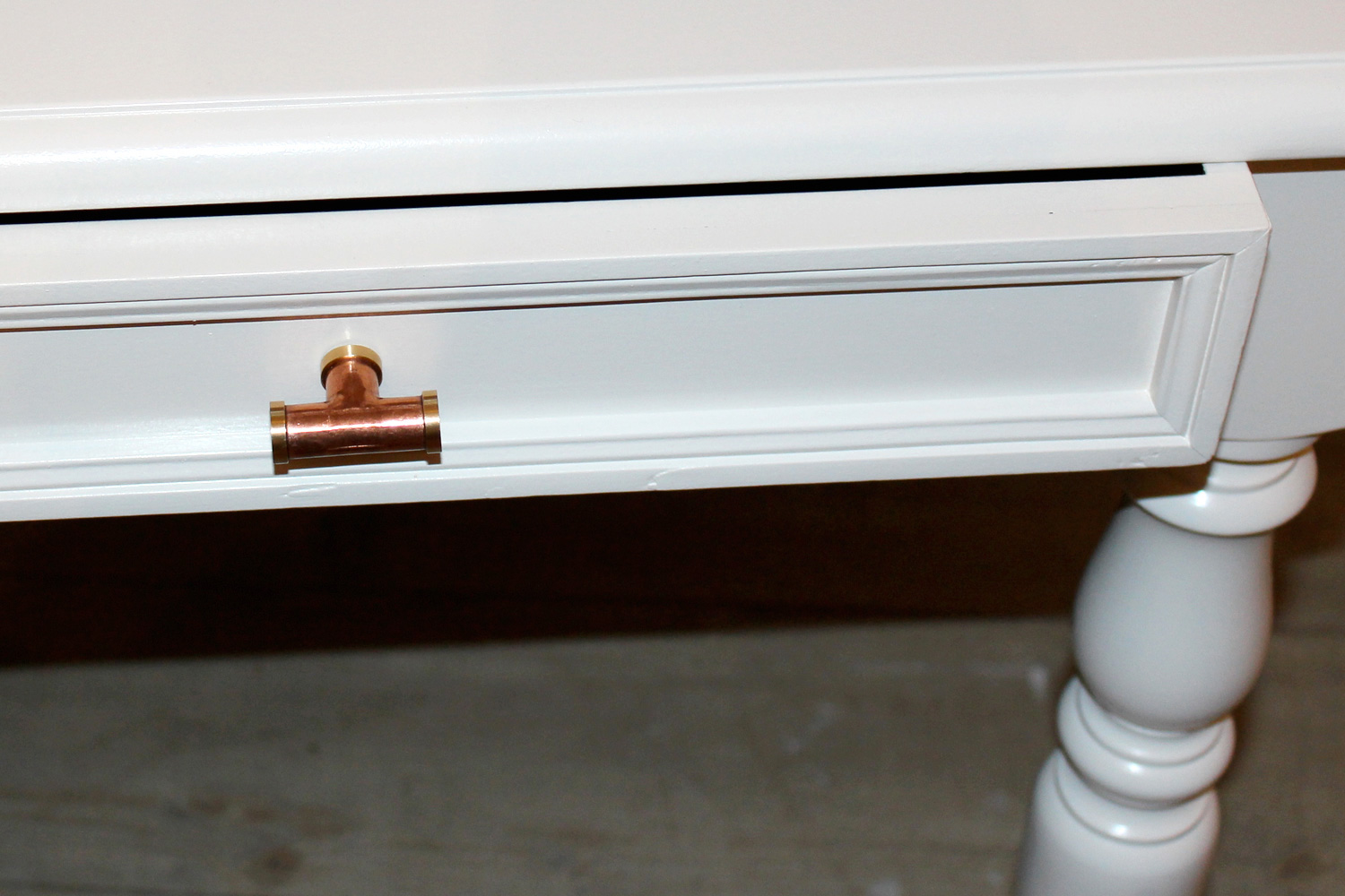 Les poignées en cuivre se marient également à la perfection avec n’importe quel autre type de meuble, et pas seulement dans la cuisine. Il vous suffit d’une nouvelle poignée pour sublimer un simple bureau peint entièrement en blanc. Le résultat parle de lui-même avec la photo ci-dessous. Qu’en pensez-vous ?