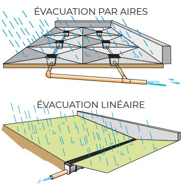 Caniveau PVC modulaireLes caniveaux à grilles modulaires sont la solution idéale pour l’évacuation des eaux pluviales (siphons de cour, regards pluviaux, tampons). La canalisation des eaux pluviales peut être installée de deux façons : par aires (rectangulaires et carrés) ou linéaire. Le système de drainage par aires est indiqué si l’eau tombe dans une surface qui peut être subdivisée en plusieurs pentes qui descendent vers un réseau de regards. Cette procédure prévoit des frais d’exécution élevés à cause d’une plus importante quantité de matériaux et de travail demandés. Le système de drainage linéaire est indiqué si l’aire a une seule pente qui canalise l’eau dans un caniveau. Cette solution est quand même esthétique et moins onéreuse.