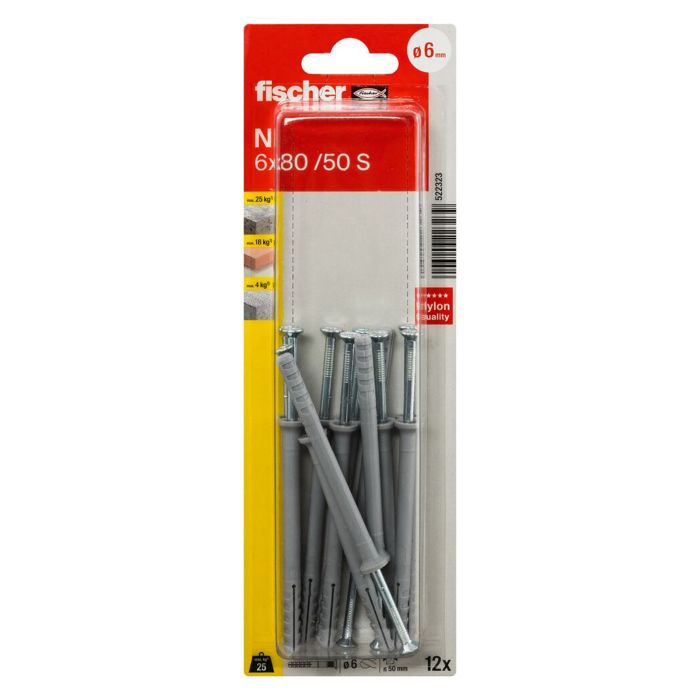 12 chevilles à frapper N Ø6 x 80 mm avec collerette plate et vis tête fraisée en acier électrozingué - Fisher