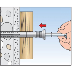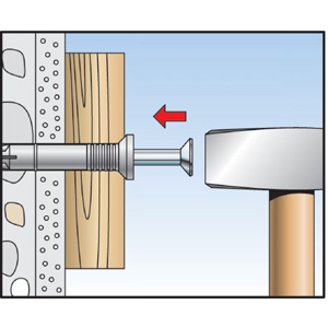 2. La cheville s'expanse dans deux directions lorsque le clou est enfoncé et s'ancre de façon sûre dans le matériau de construction.