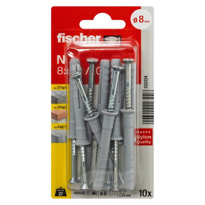 10 chevilles à frapper N Ø8 x 60 mm avec collerette plate et clou en acier électrozingué à tête fraisée - Fisher