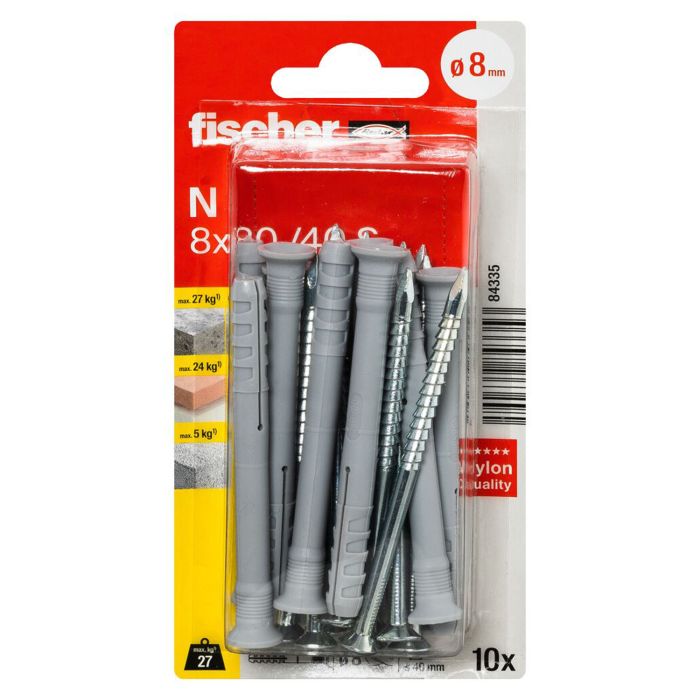 10 chevilles à frapper N Ø8 x 80 mm avec collerette plate et clou en acier électrozingué à tête fraisée - Fischer