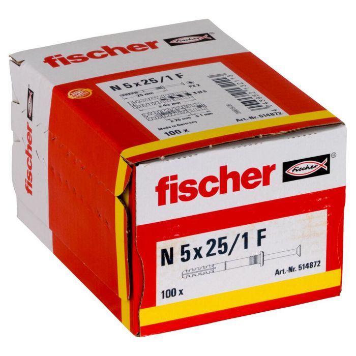 100 chevilles à frapper N Ø5 x 25 mm avec collerette plate et clou à empreinte pozi en acier électrozingué - Fischer