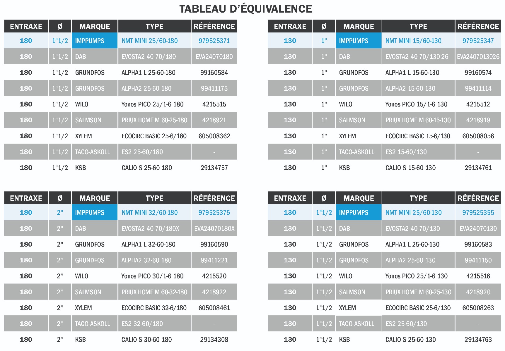 Circulateur chauffage et clim NMT MINI 25/60 - Entraxe 180 mm - Référence IMP PUMPS : 979525371TRC