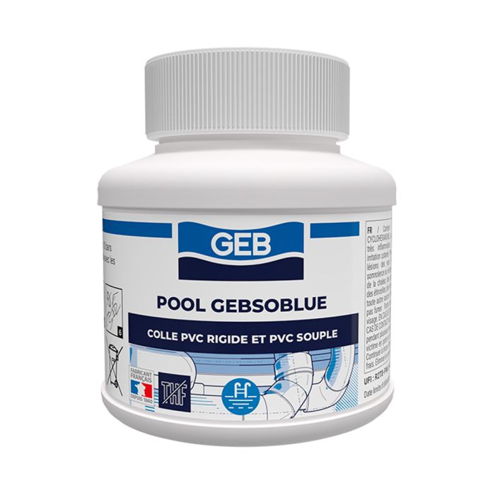 L'avantage de la colle POOL Gebsoblue est qu'elle ne coule pas lors de son application. Fournie avec un bouchon pinceau, sa couleur bleue permet dêtre facilement repérable lorsque vous l'appliquez sur des flexibles ou raccords.