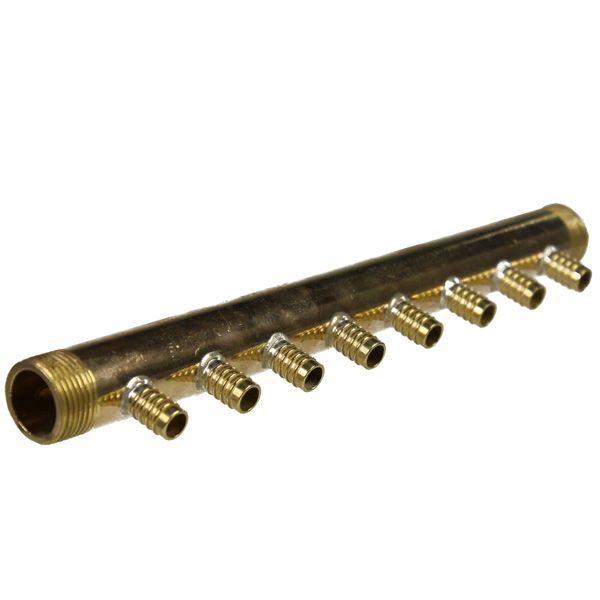 Collecteur 3/4" (20/27) Mâle-Mâle 8 piquages à Glissement pour tube PER diamètre 12 compris 8 bagues de 12