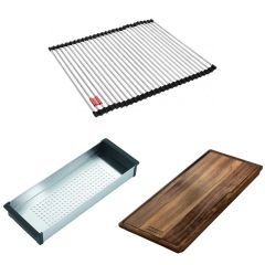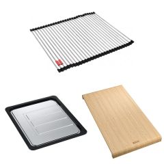 Set accessoires cuves Box Inox : Rollmat + Panier égouttoir + planche à découper en bois - Franke