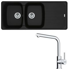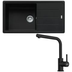 Pack full black évier XL Basis Fragranit 970 x 500 x 200 mm + mitigeur Lina L noir - Franke