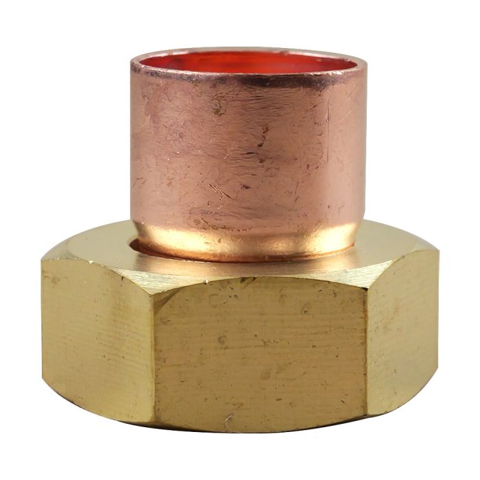 Raccord 2 pièces, douille cuivre à souder et écrou à visser.