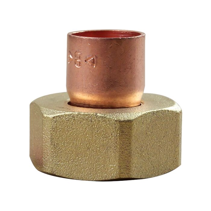 Raccord 2 pièces, douille cuivre à souder et écrou à visser.