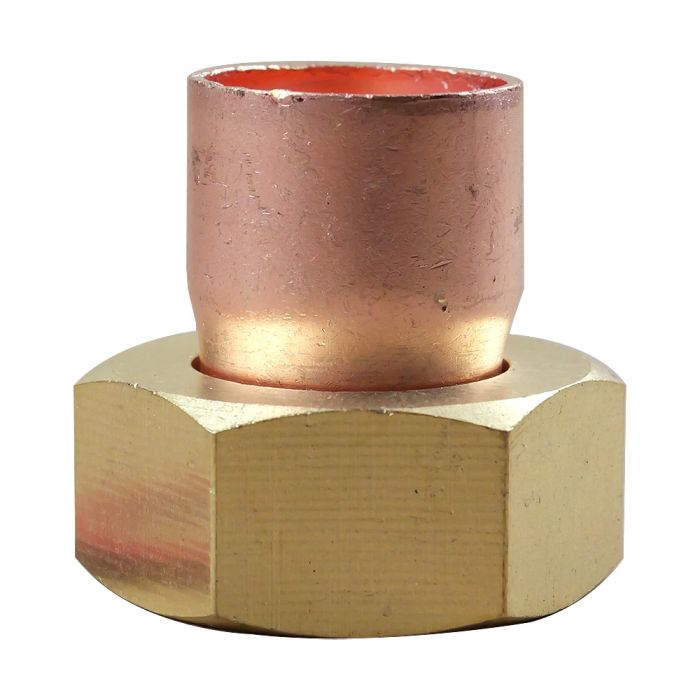 Raccord 2 pièces, douille cuivre à souder et écrou à visser.