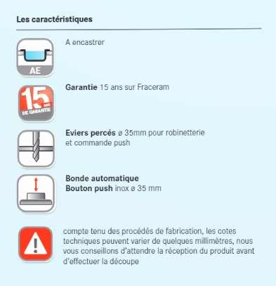 Données techniques de l'évier