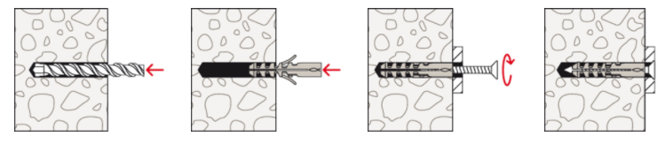 • Lors du vissage, la cheville S s'expanse dans deux directions et s'ancre de façon sûre dans le matériau de construction.