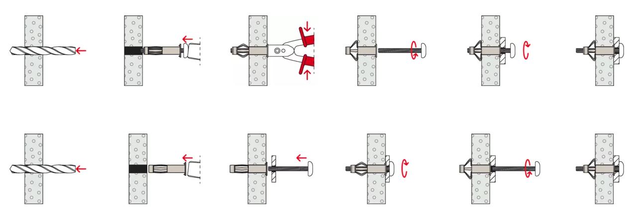 • La cheville à utiliser se détermine en fonction de l'épaisseur du panneau, afin de permettre une expansion optimale dans la cavité.