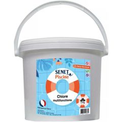 Chlore multifonctions désinfectant, galet de 250 g - Seau de 5 Kg - SENET Piscine