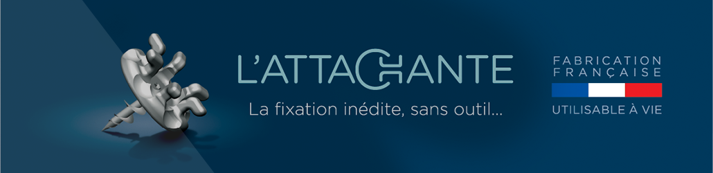 De cette réflexion est née L’ATTACHANTE®, un système de fixation révolutionnaire, responsable et breveté, utilisable à vie et par tous, qui permet de fixer, suspendre, accrocher des objets grâce à de nombreux accessoires et ce, sans aucun outil. Française, écoresponsable et ultra-résistante, L’ATTACHANTE® est très simple à utiliser et à été imaginée tant pour les non bricoleurs et les amateurs de décoration responsable et évolutive que pour les architectes et les galeries d’art.