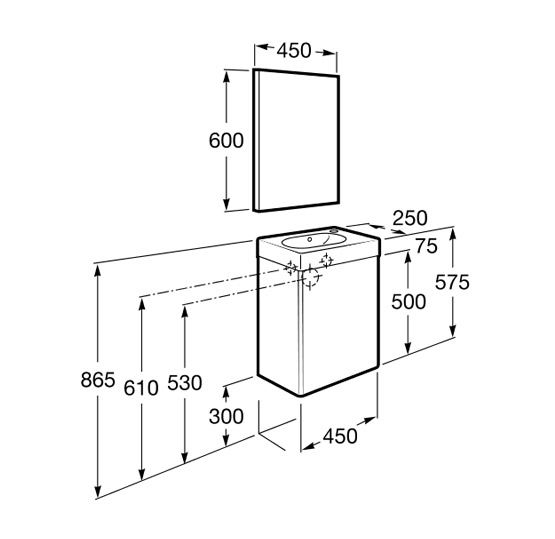 Pack Unik MINI 450 meuble, lave-mains et miroir - Roca