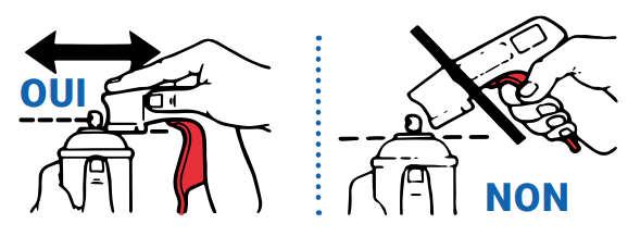 Pour le montage et le démontage du pistolet sur l'aérosol, effectuez un mouvement horizontal sans appuyer sur la gâchette.