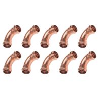 Lot de 10 raccords cuivre à sertir - Courbes 90° Femelle/Femelle Ø22