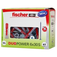50 chevilles bi-matière DUOPOWER Ø6 x 30 mm S avec vis Ø4,5 x 40 mm - Fischer