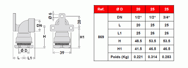 1. Applique murale coudé femelle 1/2" (15/21) DECA laiton tube PE Ø25 - Sferaco