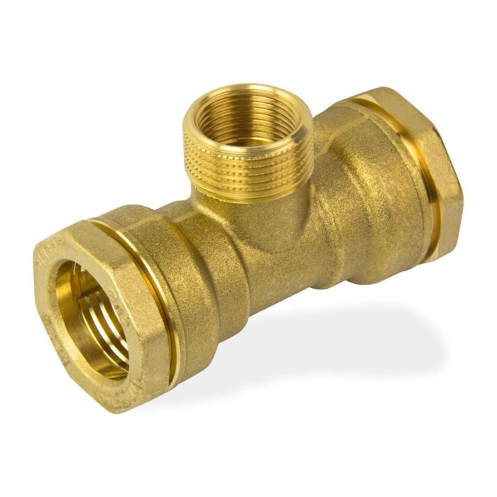 Raccord DECA laiton tube PE Ø63 - Té 90° femelle 1" 1/2 mâle au centre 2" (50/60)