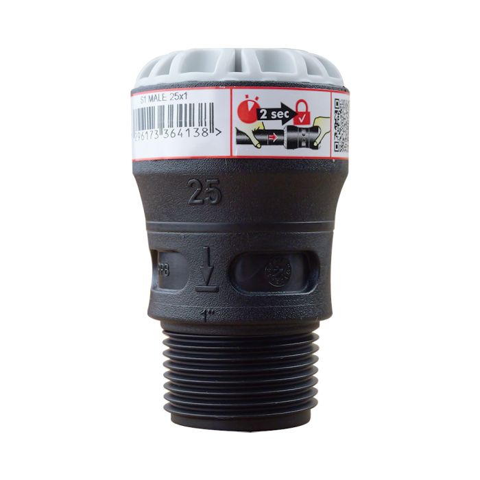 Raccord droit encliquetable PE Ø25 - mâle 1" - Série 1 - Plasson