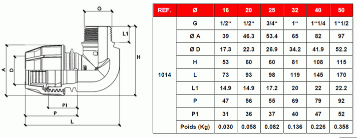 dimension raccord serie 1014