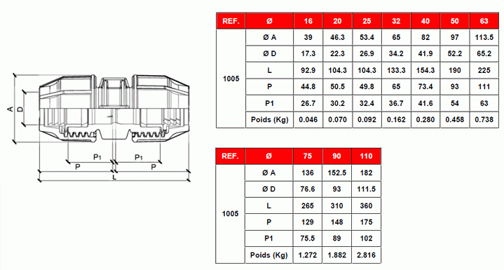 dimension raccord serie 1005
