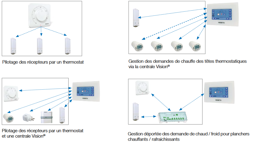 Le récepteur BT-WR02 RF FC est un récepteur mural, spécialement conçu pour contrôler la régulation du chauffage hydraulique. Il intègre une régulation proportionnelle avec un cycle temporel de 10mn ou une régulation d'hystérésis. Le relais 10A peut être utilisé pour contrôler un chaudière ou une pompe à chaleur par un contact libre. Il est compatible avec la gamme Watts Vision®.