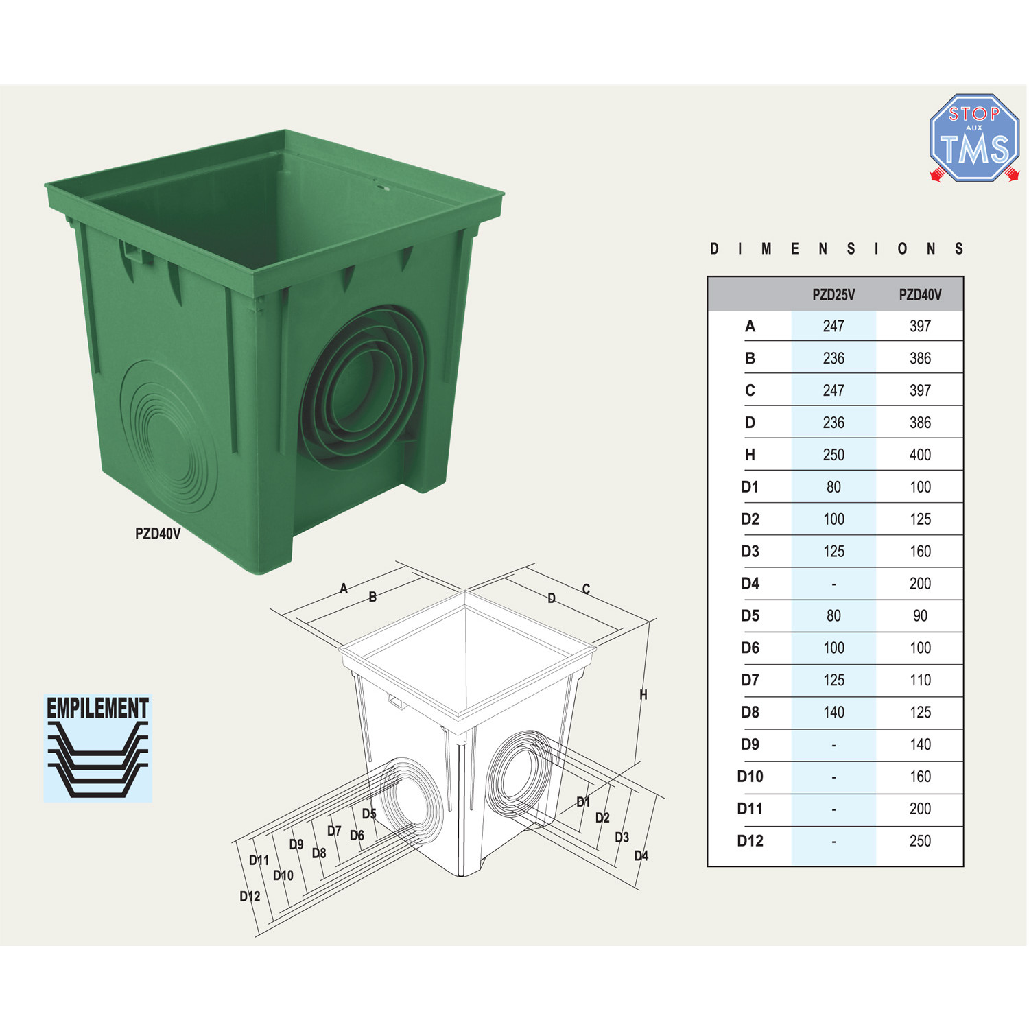 Regard Polypropylène SERIE 2000 250x250-Ø80 à 140 - VERT