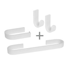 38. Kit de 4 accessoires salle de bain MATERIA en aluminium brillant éloxé blanc - avec adhésif 3M - Koh-I-Noor