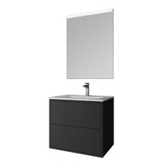 19. Pack meuble "The Gap" 700 - 2 tiroirs + lavabo slim + miroir LED - blanc mat/poignées noires - Roca