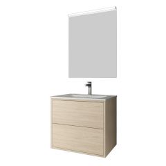 Pack meuble unik "INSPIRA" 600 - 2 tiroirs + lavabo plan en fineceramic - Pin Blanc - Roca