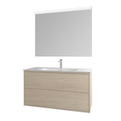 85. Pack meuble unik "OPTICA" 1000 - 2 tiroirs + lavabo plan en Stonex - Frêne clair - Roca