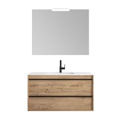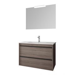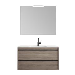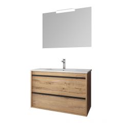 3. Pack meuble "The Gap" 1000 - 2 tiroirs + lavabo slim + miroir LED - city oak/poignées nickel mat - Roca