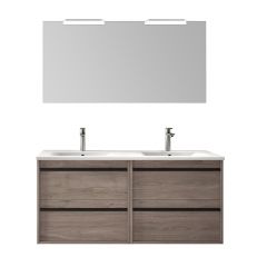 Pour une installation facile et rapide, nous vous proposons des ensembles complets de salle de bain comprenant les principaux éléments : meuble, vasque, miroir et applique LED. Le meuble complet salle de bain NOJA 900 Gris, de la marque Salgar, comprend un meuble 2 tiroirs à suspendre, une vasque en porcelaine, un miroir et un luminaire LED en applique. Pour une déco plus épurée et design, vous pouvez aussi choisir l’Ensemble complet salle de bain ARENYS 1000 Blanc brillant avec sa finition laquée. La grande marque Roca propose aussi son ensemble complet de salle de bain avec le Pack Unik PRISMA 800 comprenant un meuble 2 tiroirs, un lavabo et un miroir à LED disponible en plusieurs finitions : Gris anthracite, Frêne, Blanc-Frêne ou Blanc brillant.