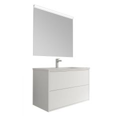 87. Pack meuble unik "OPTICA" 800 - 2 tiroirs + lavabo plan en Stonex - Blanc Mat - Roca