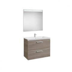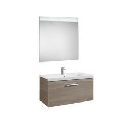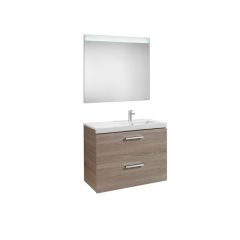 10. Pack meuble "The Gap" 800 - 2 tiroirs + lavabo slim + miroir LED - city oak/poignées nickel mat - Roca