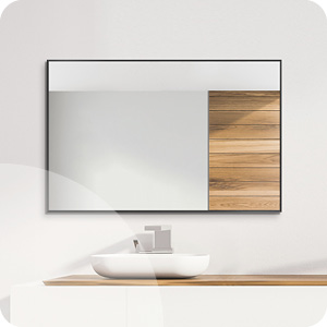 Pour apporter un style épuré tout en profitant d’une grande praticité, vous pouvez opter pour le Miroir avec éclairage à LED horizontal et vertical Tre Luci de la marque Koh-I-Noor. Mélange parfait entre fonctionnalité, esthétique et technologie, ce miroir est durable grâce à sa structure en aluminium anodisé. Il est également disponible en différentes formes et dimensions pour s’adapter aux contraintes de l’espace. Enfin, pour une ambiance naturelle, zen et écologique, Anjou-Connectique vous propose le Miroir hêtre massif THERIA. Fabriqué en France, il peut être installé verticalement ou horizontalement et prendra très facilement place dans votre espace de salle de bains. N’attendez plus et choisissez votre miroir de salle de bain au meilleur rapport qualité/prix !