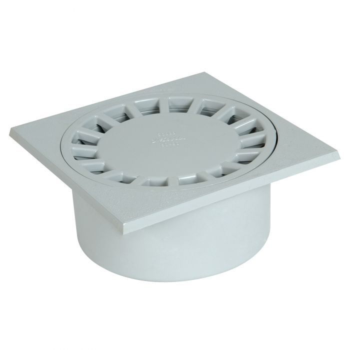 Siphon de cour 20x20cm Sorties Mâle Ø80 - Femelle Ø90 - Gris clair - Nicoll